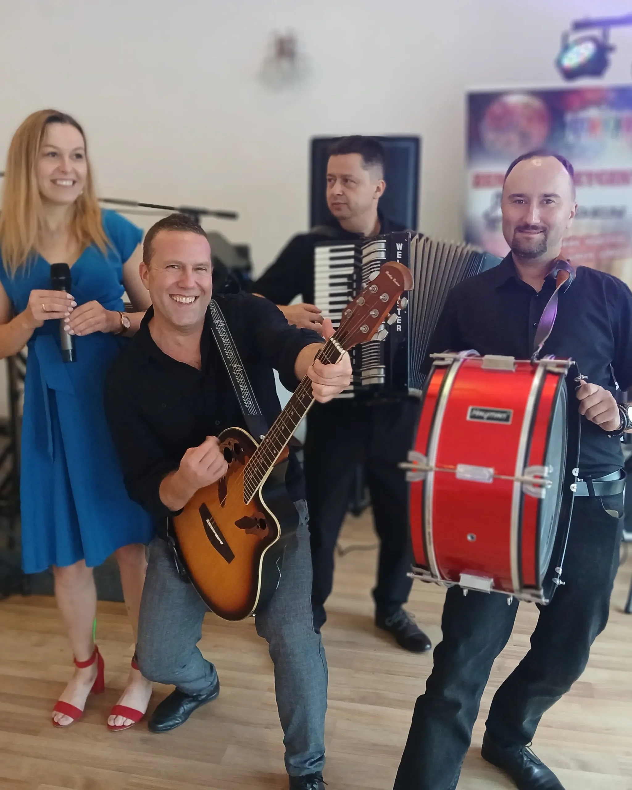 Nasz Wykwalifikowany Zespół składa się z doświadczonych osób: Wokalistki/Tamburyn, Wokalisty/Klawiszowca/Gitarzysty, Akordeonisty/ Klawiszowiec oraz Wodzireja, a także dodatkowych osób, które dobieramy wedle decyzyjności zamawiających nas klientów i organizatorów. Wszystko do Ustalenia Wedle Państwa Życzenia. Serdecznie ZAPRASZAMY Do Korzystania z Naszych Profesjonalnych Usług.